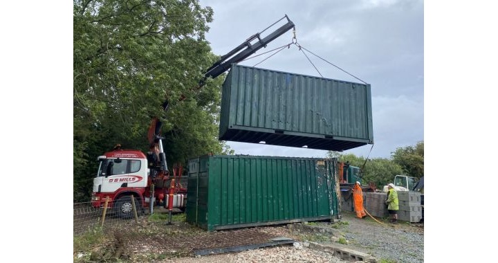 On Monday, two trucks with driver/operators plus four volunteers spent the day moving the goods and getting organised in the new compound. This was the day of Storm Floris with yellow weather warnings in North Wales, but we escaped with a few light showers and finished moving the containers before the weather became really gusty. There will still be some sorting out to do next time, not least erection of a gleaming welfare shelter, but we now have a new home.