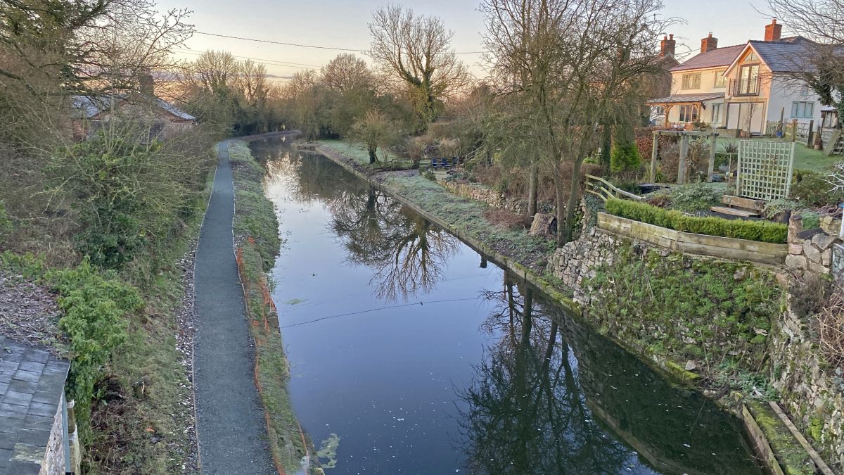 The two-mile length is presently dry and is the subject of a number of feasibility studies including topographic surveys and the assessment of structures. The strata beneath the majority of the section are mainly limestone which, whilst offering a stable base with little settlement, may also be prone to leakage. The channel is infilled in places although the largest single blockage (a railway embankment) was removed in 2018 using volunteer labour (see here). There are a number of pipes located in the channel which must be relocated as part of the work. These include a foul water sewer serving many of the houses in Pant and terminating at Llanymynech sewage works. Also, a stormwater pipe in much of the channel in the Pant area which intercepts a stream flowing down Llanymynech Hill for discharge into a watercourse some distance away at Waen Wen.